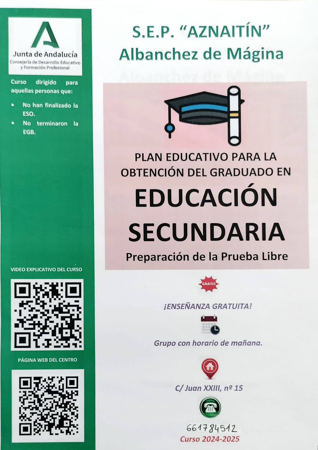 Saludos desde el Ayuntamiento. Con la llegada del nuevo curso educativo 2024-2025 la escuela de adultos presenta nuevos cursos enfocados en la mejora en calidad de vida, idiomas y obtención de la ESO.