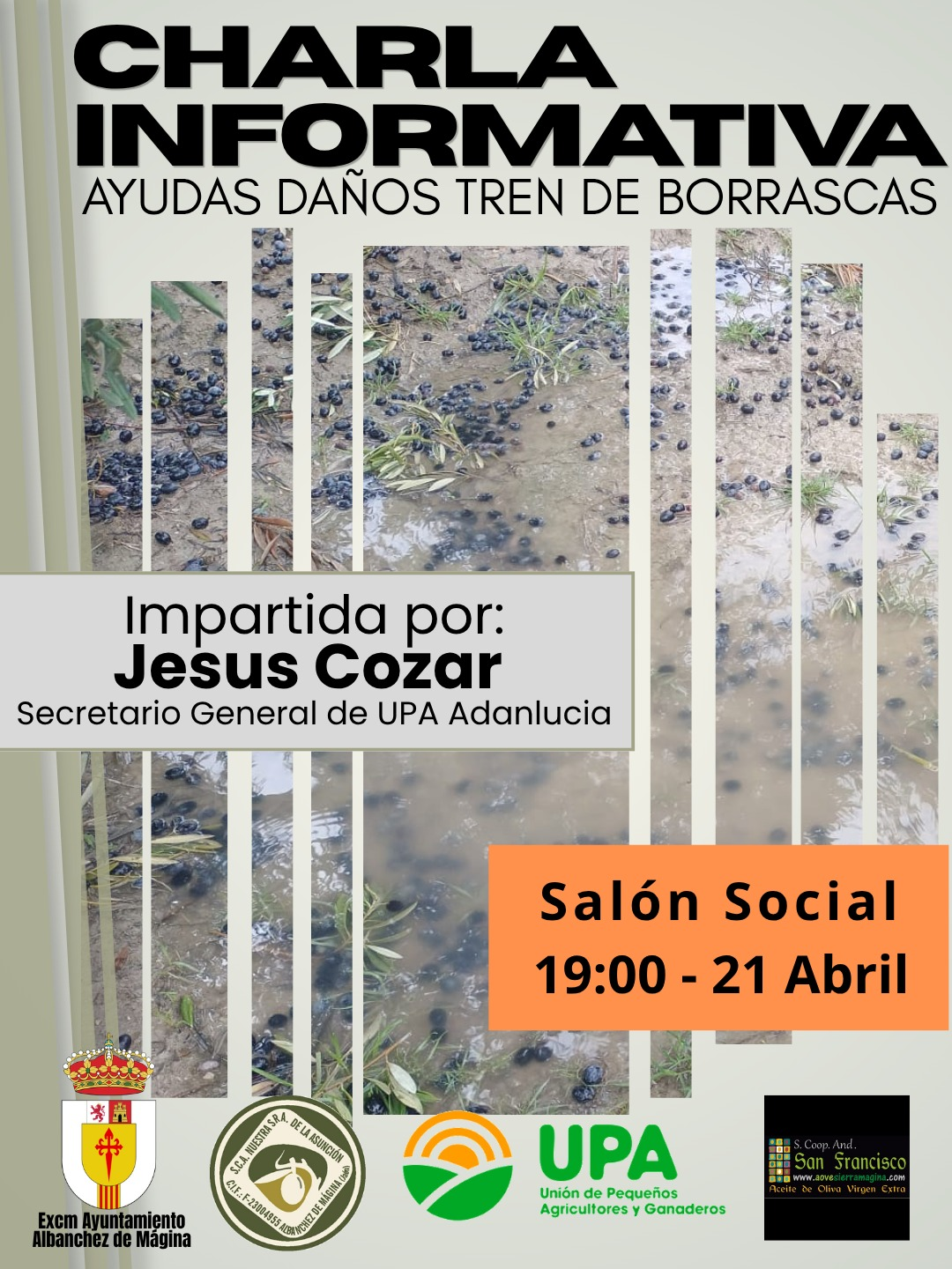 El próximo martes día 21 de abril el secretario general de UPA Andalucía vendrá a nuestro municipio para informar sobre las ayudas al olivar que hayan sufrido daños por el tren de borrascas.