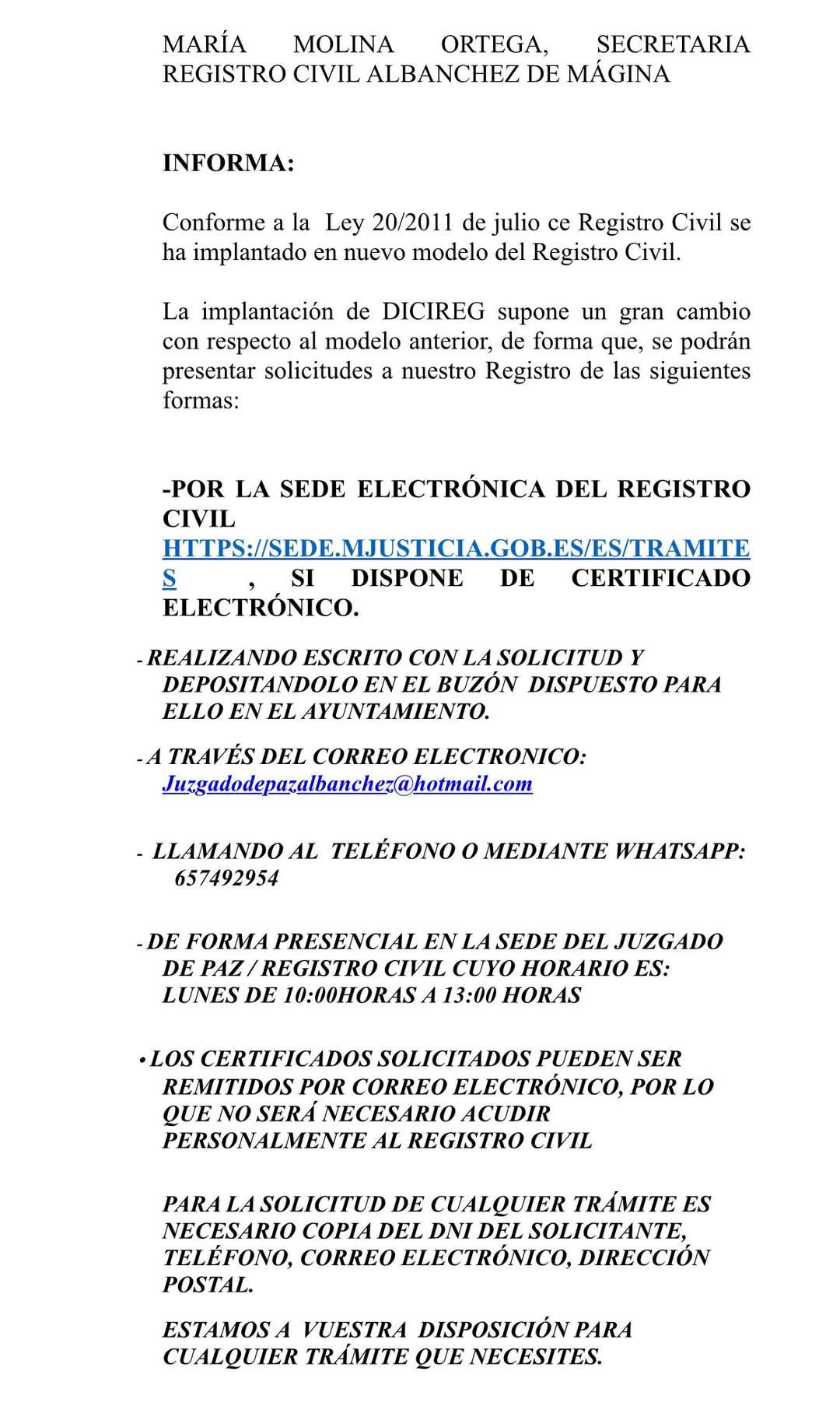 Saludos desde el Ayuntamiento. Se informa de que el sistema del registro civil se va a renovar. A partir de ahora se podrán hacer mayor numero de tramites online. También se mantienen los antiguos procedimientos. Siendo el horario […]