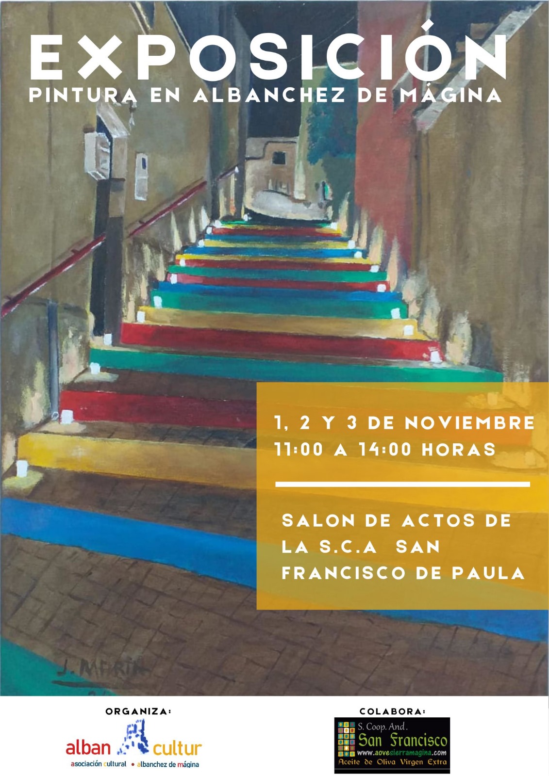 Saludos desde el ayuntamiento. La asociación ALBANCULTUR presentara el una exposición de pintura los días 1,2,3 de noviembre. En horario de 11:00 a 14:00. La Exposición se realizará en el Salón de actos de la SCA San Francisco.