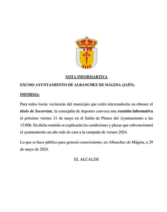 Saludos desde el ayuntamiento. Informamos que todos aquellos que quieran sacarse el titulo de socorrista, que habrá una reunión informativa en el próximo 31 de mayo. La hora sera sobre las 12:00 y se explicaran las condiciones y […]