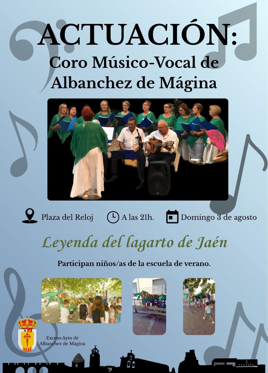 Buenos días, este domingo tendremos una actuación muy bonita y original a cargo del coro del municipio. En ella participarán también los niños y niñas de la escuela de verano . ¡No os la perdáis!