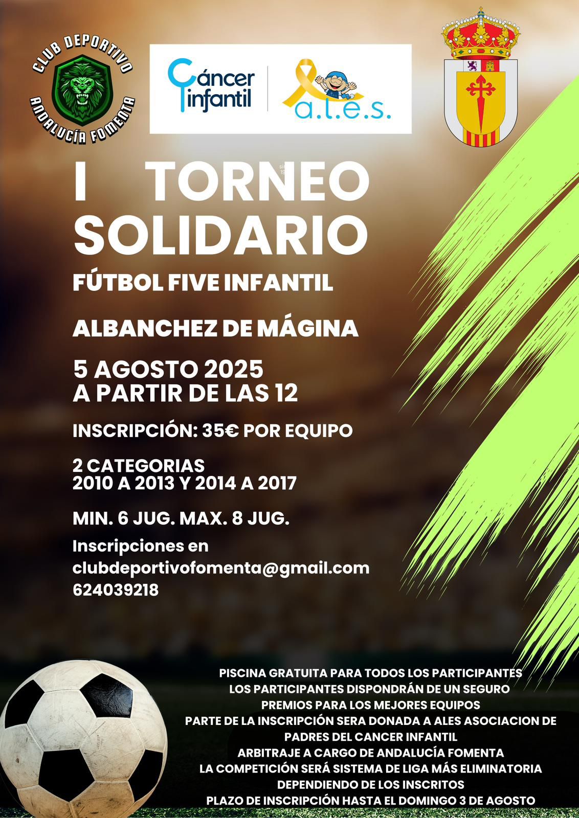 Este año también hay un torneo infantil que se celebrara el día 5 de Agosto. Este torneo infantil, donde los peques serán los protagonistas, destinaremos todo lo recaudado a Asociación ALES Jaén . Esta vez hacemos deporte por una buena causa.