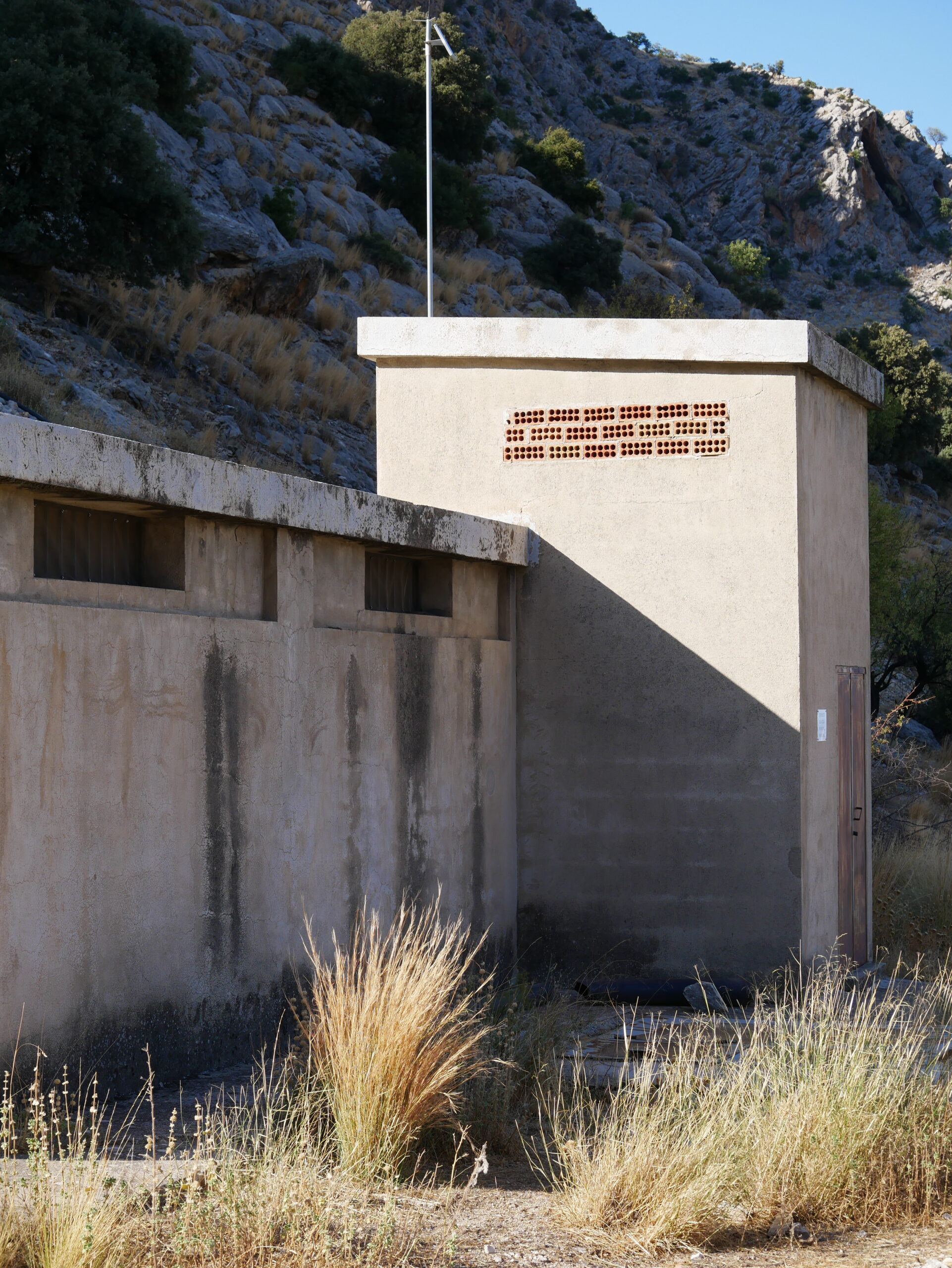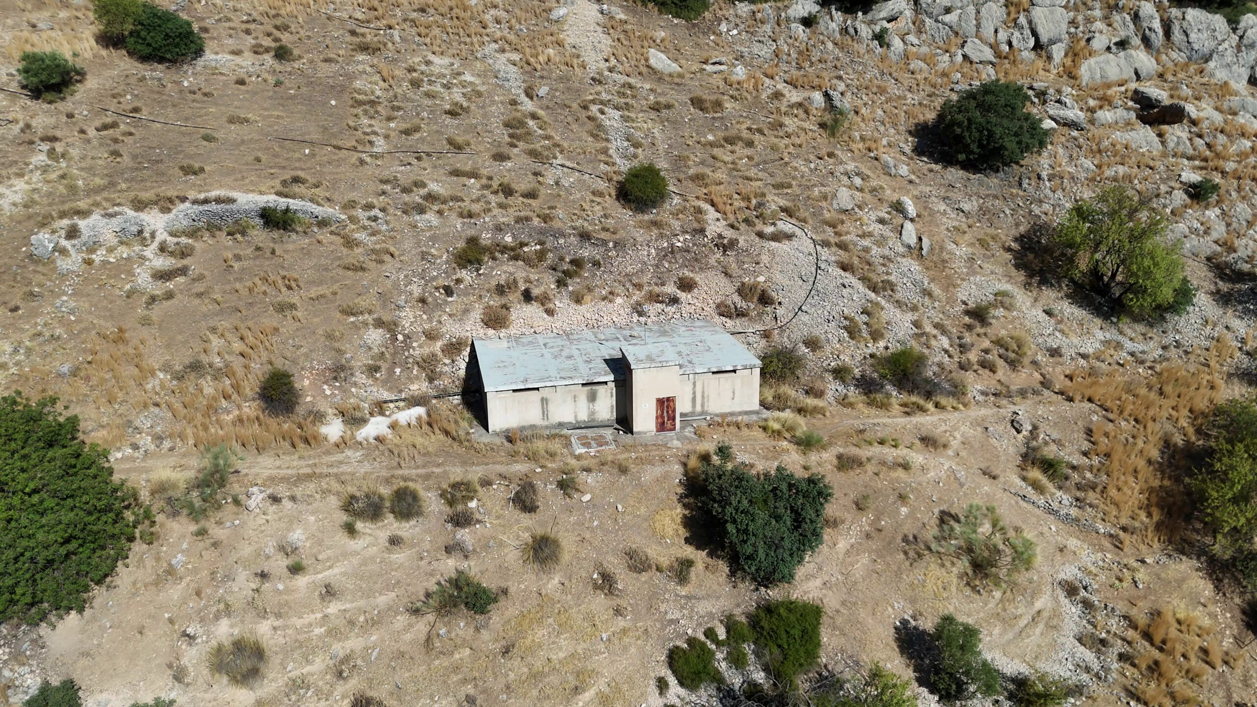 Deposito situado a 890 m s.n.m., de base rectangular y fabricado en hormigón.