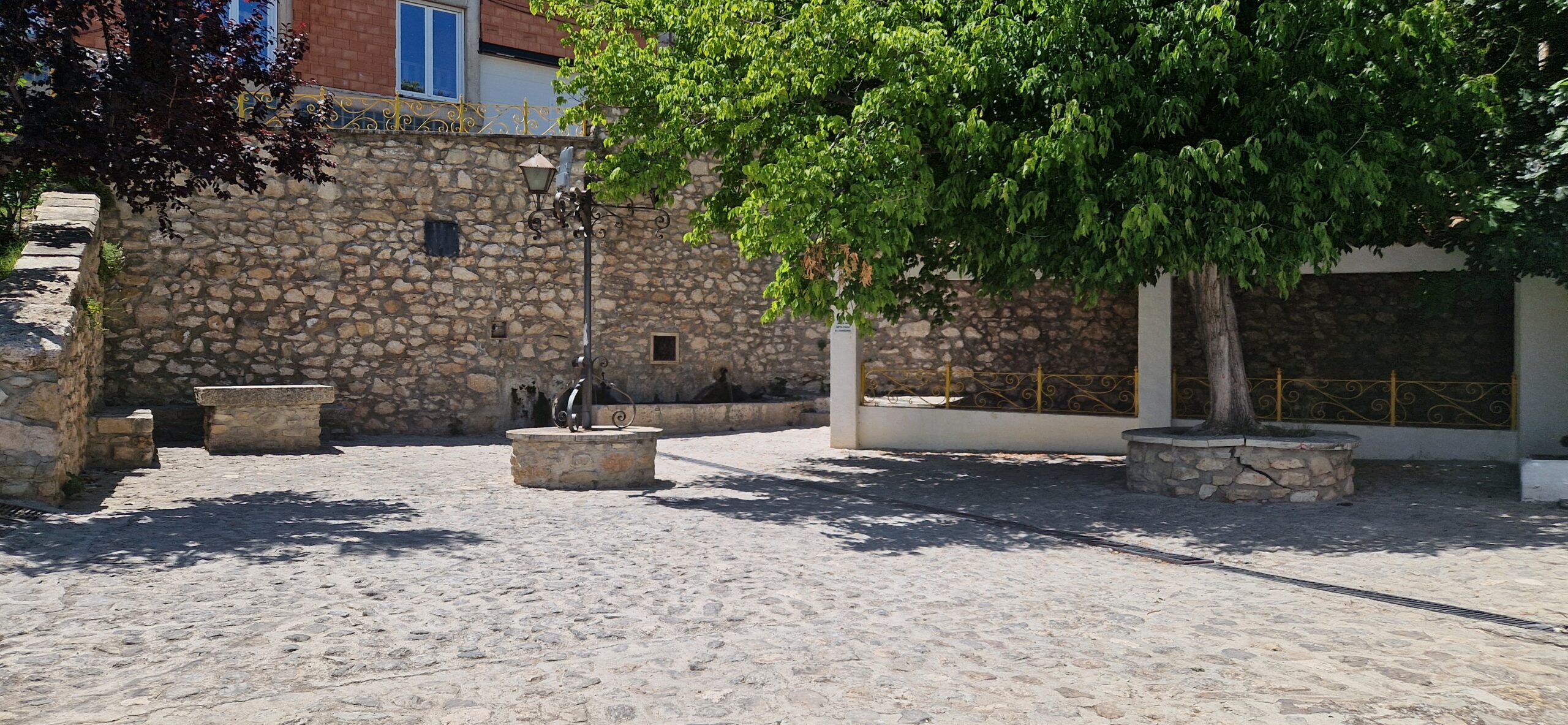 La fuente cuenta con una pequeña área de recreo en la que descansar. Área de descanso que cuenta con mobiliario urbano, creado artesanalmente y realizado en piedra.