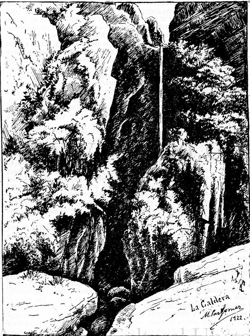 Visita que realizo Don Mariano a nuestro municipio y que plasmo en la revista Don Lope de Sosa, de en 1922. En esta estrada llamada «La Caldera» D. Mariano detalla que realizo el sendero. Destacando su belleza natural, además de su sendero.
