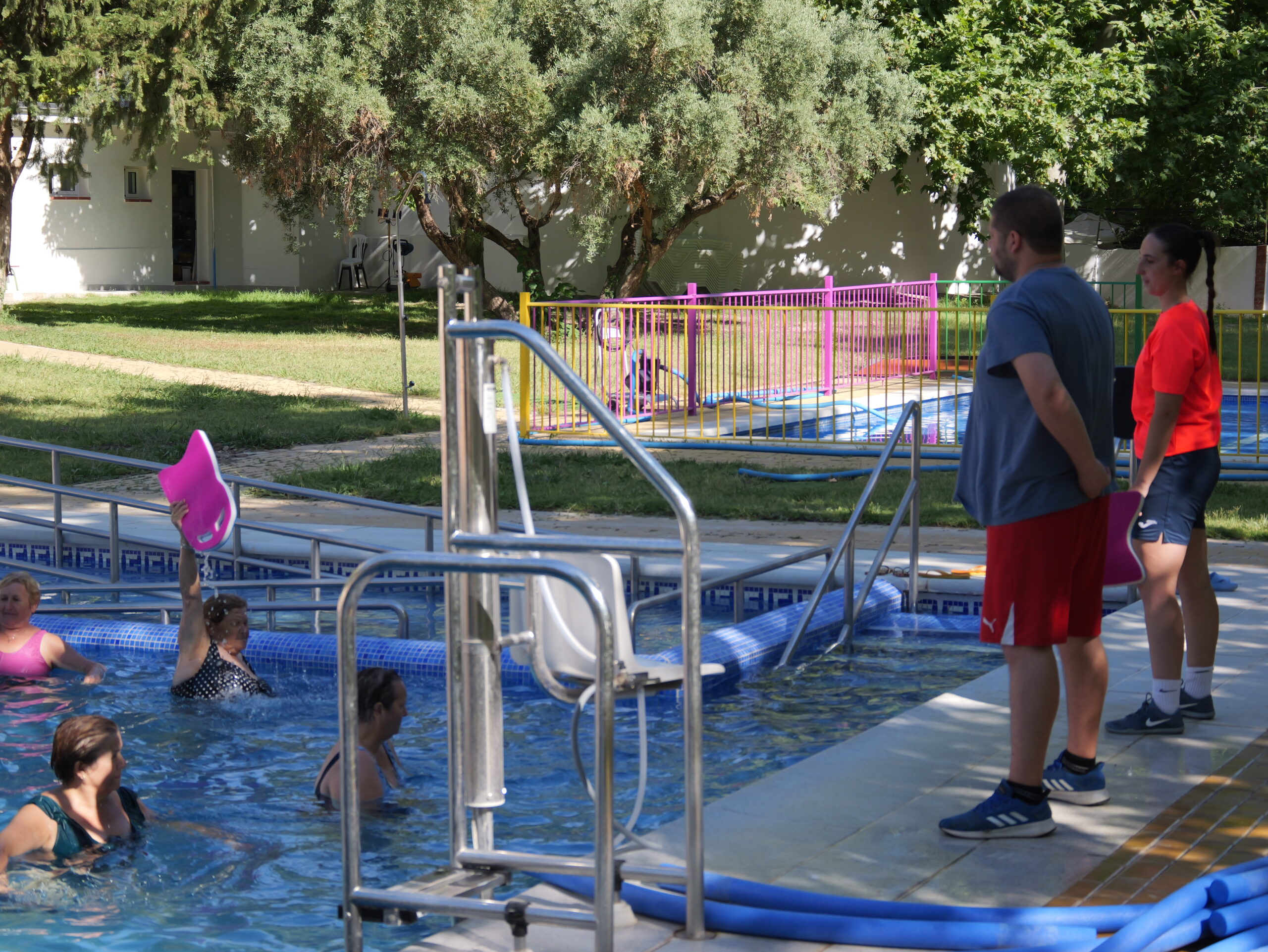 Accesos para todos. La piscina cuenta con acceso para minusválidos, tanto rampa, como asiento. Para que todos puedan utilizarlas.