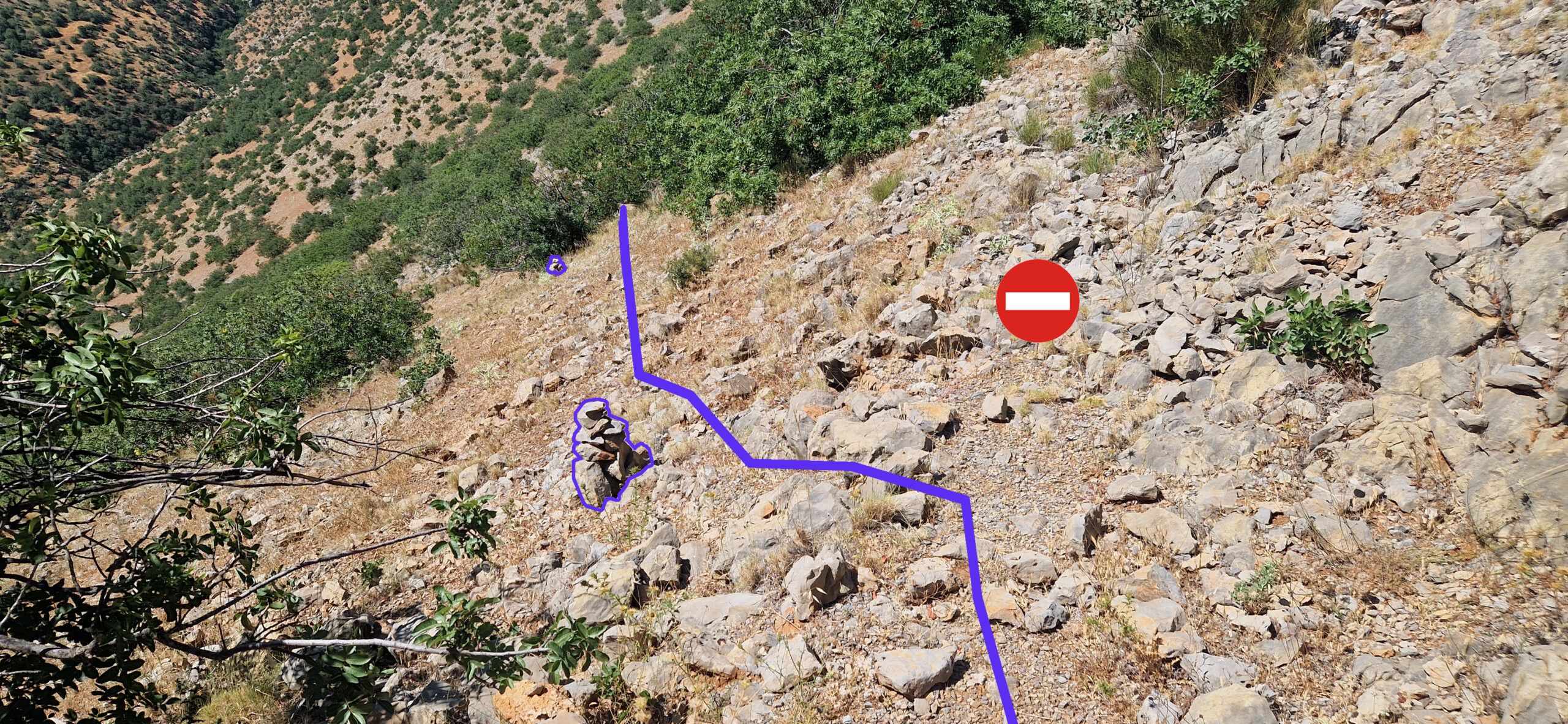 Esta vereda es difícil de apreciar, por lo que dejamos marcada la ruta en el mapa.