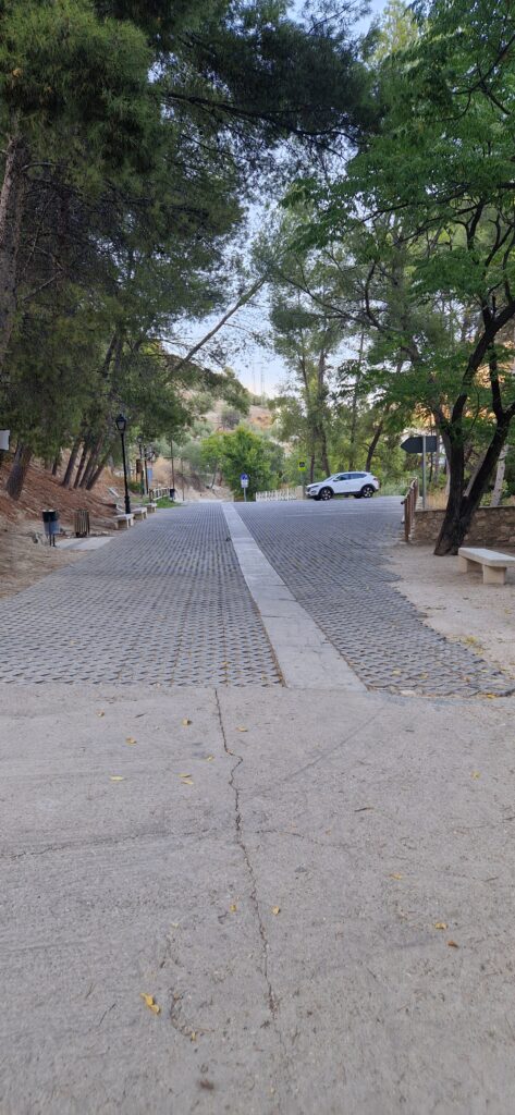 Una vez pasado el torreón llegaremos a una zona de aparcamiento, con fuentes donde parar y descansar.