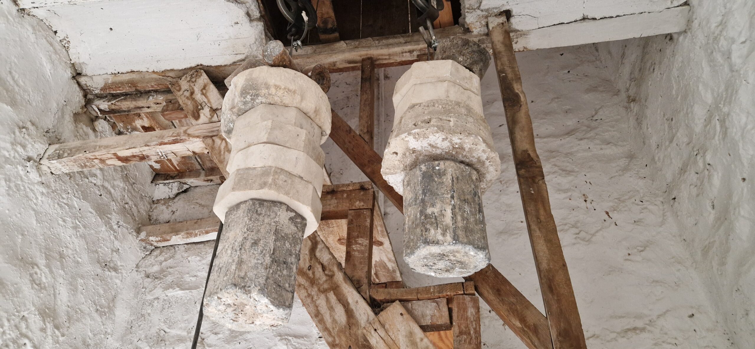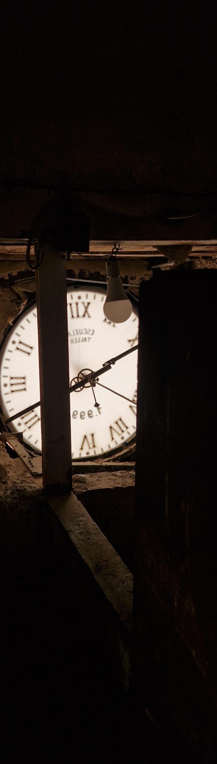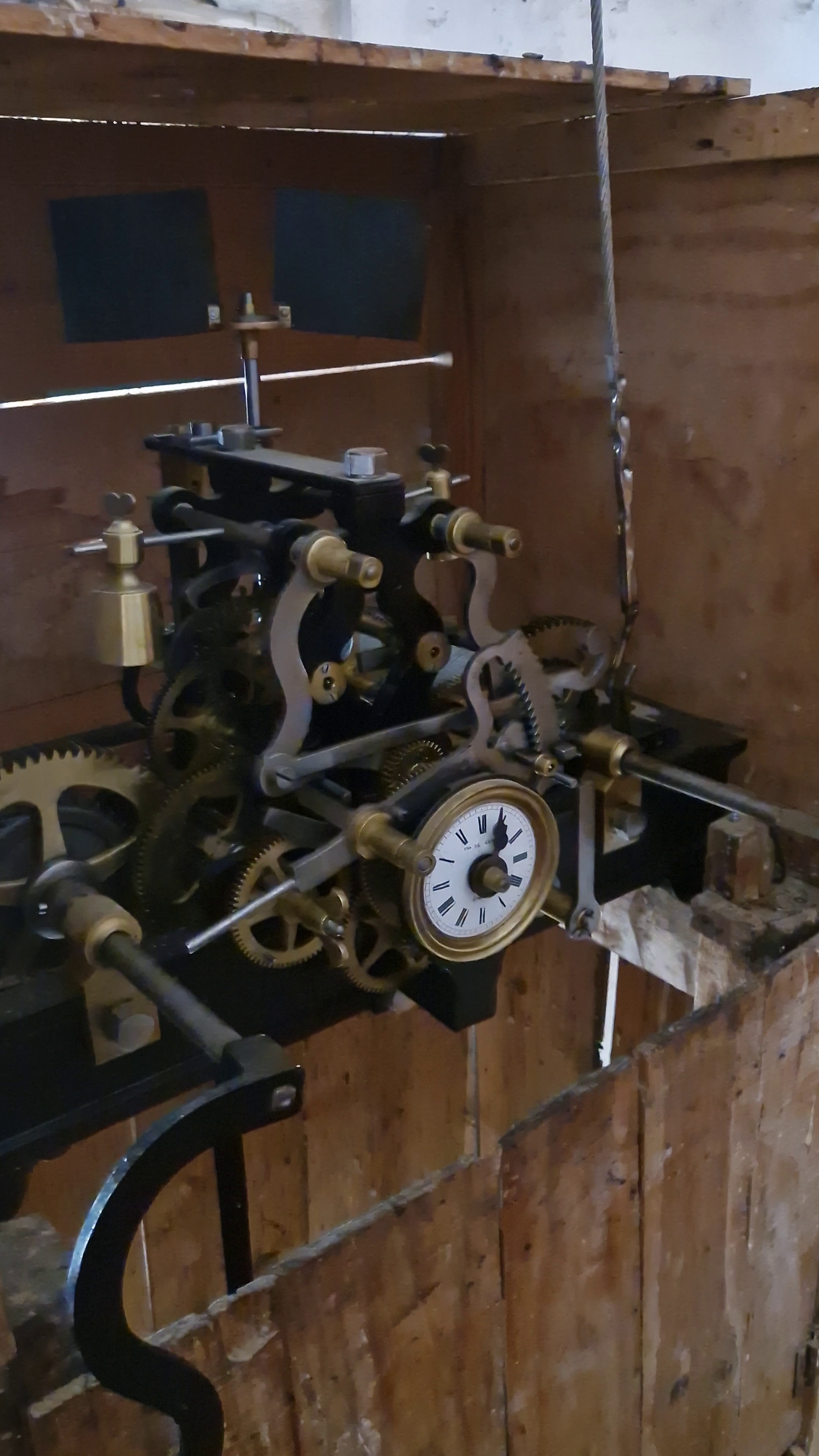 Cuando los pesos caen, hay que volver a subirlos para que siga funcionando el mecanismo. Como curiosidad decir que la duración de la campana es inferior a la del reloj. Hay que hacerlo una vez a la semana para el reloj y cinco días para la campana.