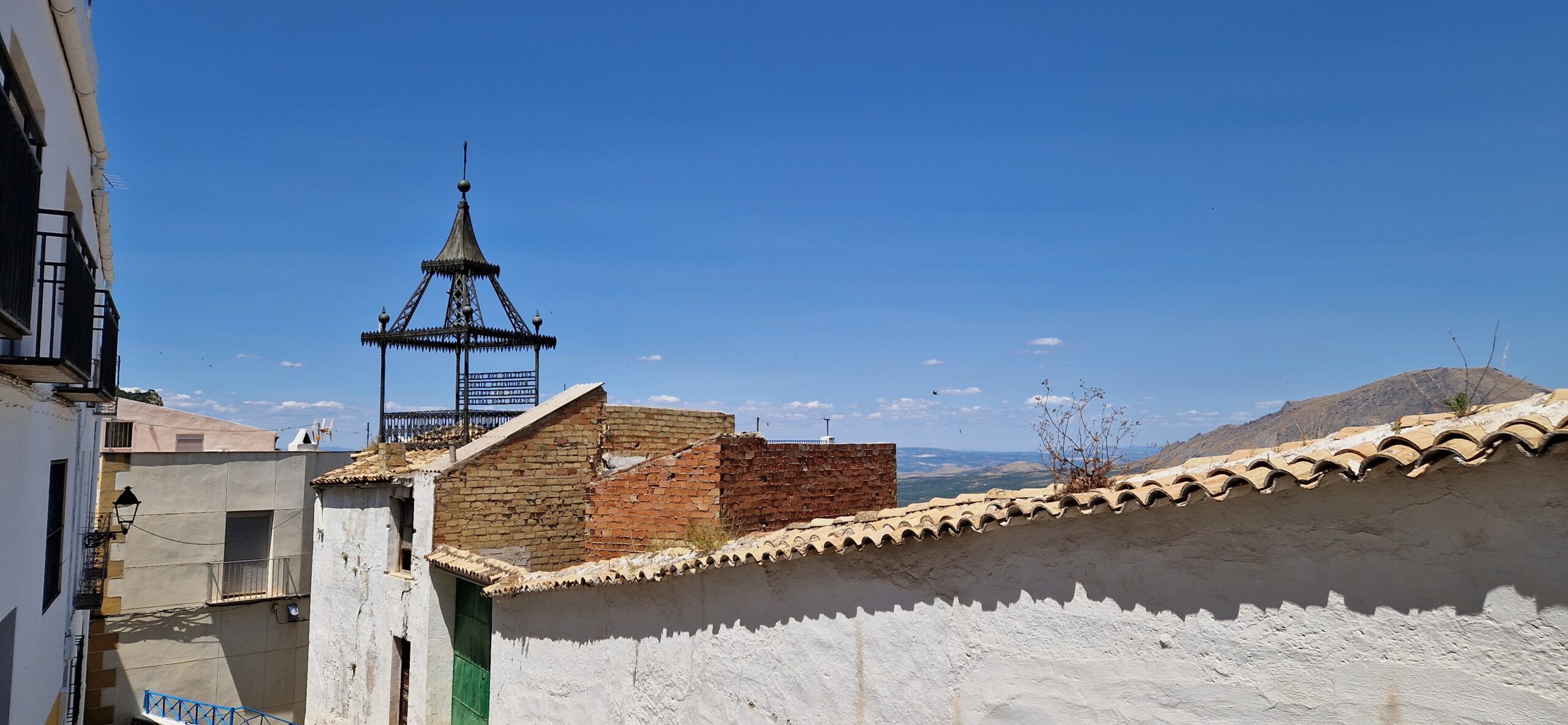 Se encuentra rematado, en la parte superior de la torre, con una estructura de hierro fundido. En ella se encuentra una inscripción en hierro que dice: «Costeado con fondos municipales siendo alcalde Don Sebastián Ogayar León Año 1883». Alli se encuentra la campana, que se acciona con el mecanismo del reloj.
