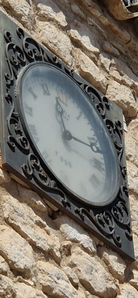 Como se ha mencionado, el mecanismo del reloj se encuentra en la parte superior. Es el mecanismo original de 1883 que se ha mantenido reparándolo regularmente, la ultima en la década de 2010.